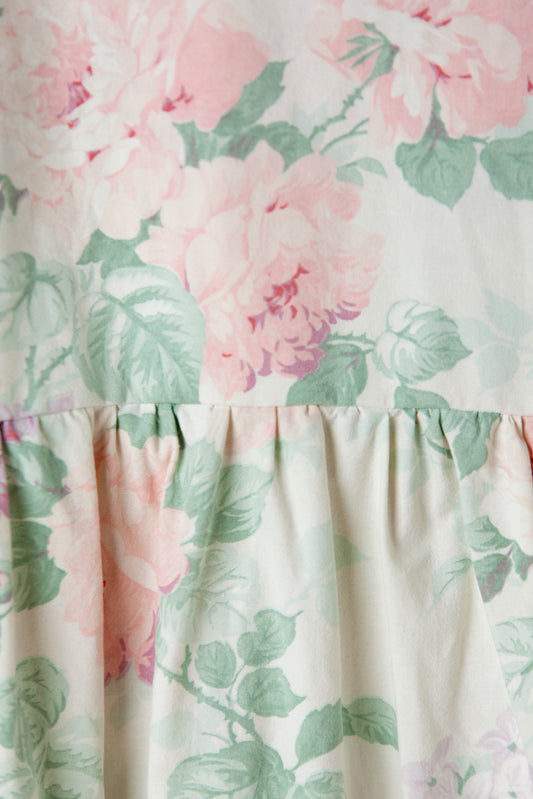 Robe coton blanche fleurs rose S