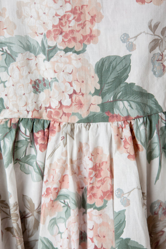 Robe coton blanche fleurs d'hortensia rose XL