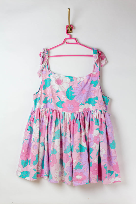 Robe à fleurs rose, orange et verte à bretelles ajustables TAILLE XL-XXL