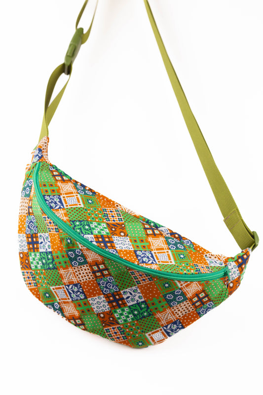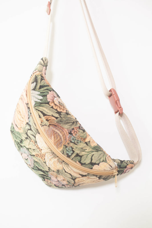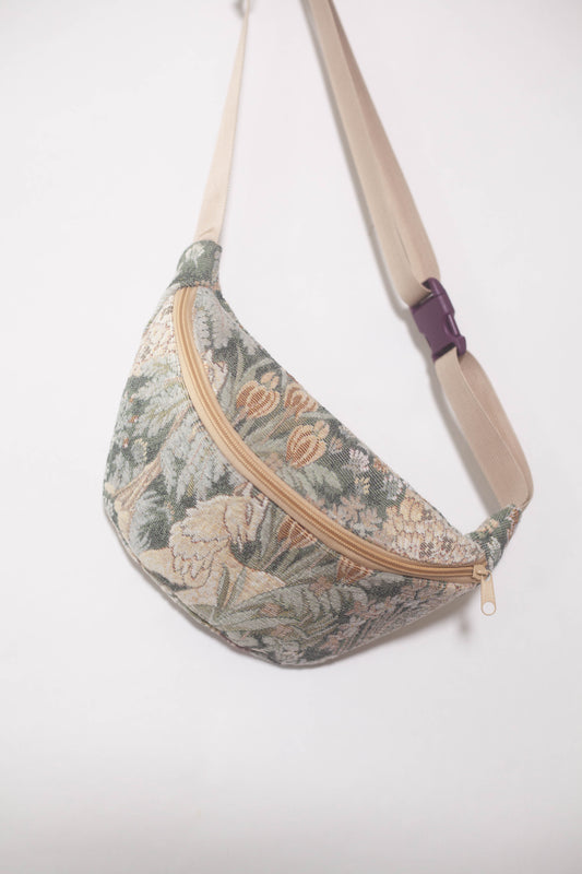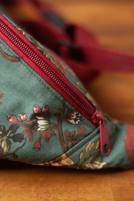 Sacoche banane motifs oiseaux et fruits bordeaux