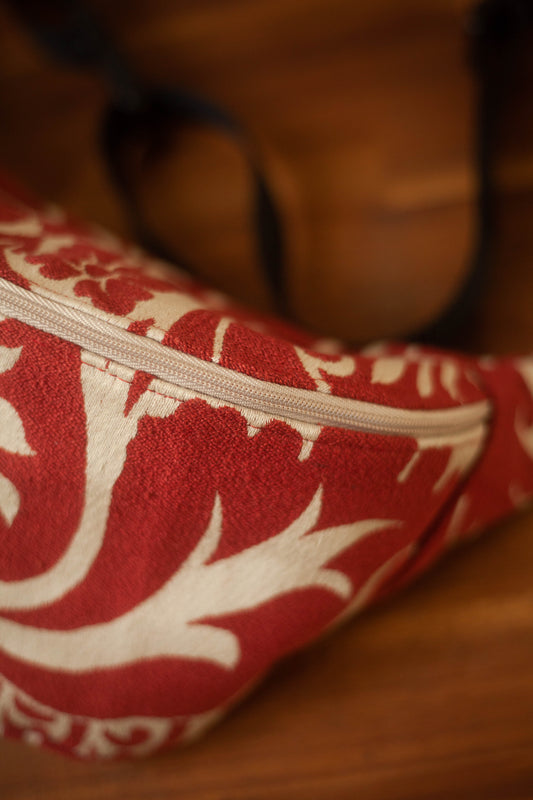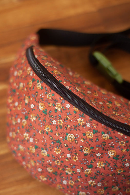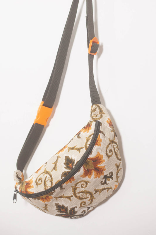 Sacoche banane tapisserie à fleurs orange