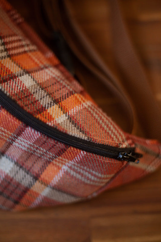 Sacoche banane à carreaux marron et orange